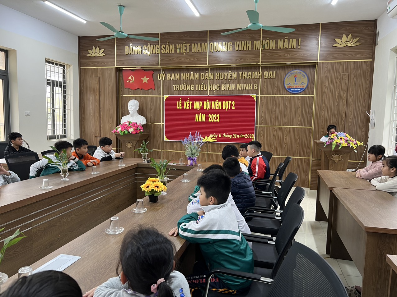 Chào mừng thành công Đại hội Đoàn thành phố, sáng ngày 6 tháng 2 năm 2023 liên đội trường tiểu học Bình Minh B đã tổ chức kết nạp đội viên cho các e nhi đồng khối 3 đợt 2 năm học 2022 - 2023. Các em được kết nạp đội viên hôm nay đều là những nhi đồng chăm ngoan, có thành tích tốt trong học tập và tích cực tham gia phong trào, hoạt động của nhà trường. Tới dự lễ kết nạp có 69 bạn học sinh.