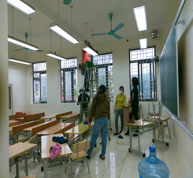 Thực hiện theo ý kiến chỉ đạo của Phòng GD&ĐT huyện Thanh Oai, chiều ngày 9 tháng 2 năm 2022, 100% các cán bộ, giáo viên, nhân viên trường Tiểu học Bình Minh B đã chủ động phối hợp với phụ huynh học sinh tổ chức vệ sinh, khử khuẩn trường, lớp học, bảo đảm cơ sở vật chất, trang thiết bị y tế để chào đón các con học sinh quay trở lại trường vào ngày 10/2/2022 sau thời gian nghỉ tránh dịch Covid-19. Tất cả mọi người đều tập trung lau chùi, dọn dẹp các khu vực trong trường từ khuôn viên cho đến các phòng học, phòng bếp, nhà vệ sinh...Giáo viên chủ nhiệm cùng phụ huynh của 19 lớp tích cực vệ sinh, khử khuẩn phòng học. Giáo viên chuyên biệt và nhân viên trong nhà trường cũng nhanh chóng dọn dẹp sạch sẽ không gian chung và khu vực các phòng hiệu bộ. Bên cạnh niềm vui của các thầy cô, không thể không kể đến sự hỗ trợ tích cực và cũng là nguồn động viên tinh thần của các phụ huynh học sinh trong nhà trường. Ngay từ khi còn sớm, bố mẹ các con đã có mặt, mang theo xô chậu, giẻ lau, nước khử khuẩn,… để sẵn sàng cùng các thầy cô giáo tham gia lao động. Buổi tổng vệ sinh, khử khuẩn nhằm đảm bảo an toàn khi học sinh đi học trở lại của trường Tiểu học Bình Minh B đã diễn ra đầy nghiêm túc và thành công tốt đẹp. Tập thể giáo viên trường Tiểu học Bình Minh B xin được kính chúc quý phụ huynh và các con học sinh luôn mạnh khỏe, bình an, chúc đất nước ta sớm ngày chiến thắng đại dịch Covid-19. Sau đây là một số hình ảnh trong buổi lao động tổng vệ sinh nhà trường ngày 9/2/2022 của tập thể cán bộ, giáo viên để chuẩn bị đón học sinh quay trở lại trường sau thời gian dài nghỉ phòng chống dịch Covid-19 vào ngày 10/2/2022:
