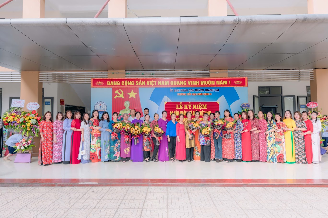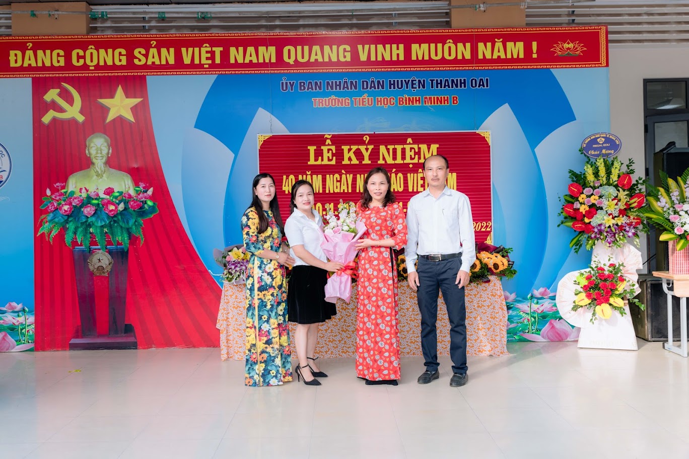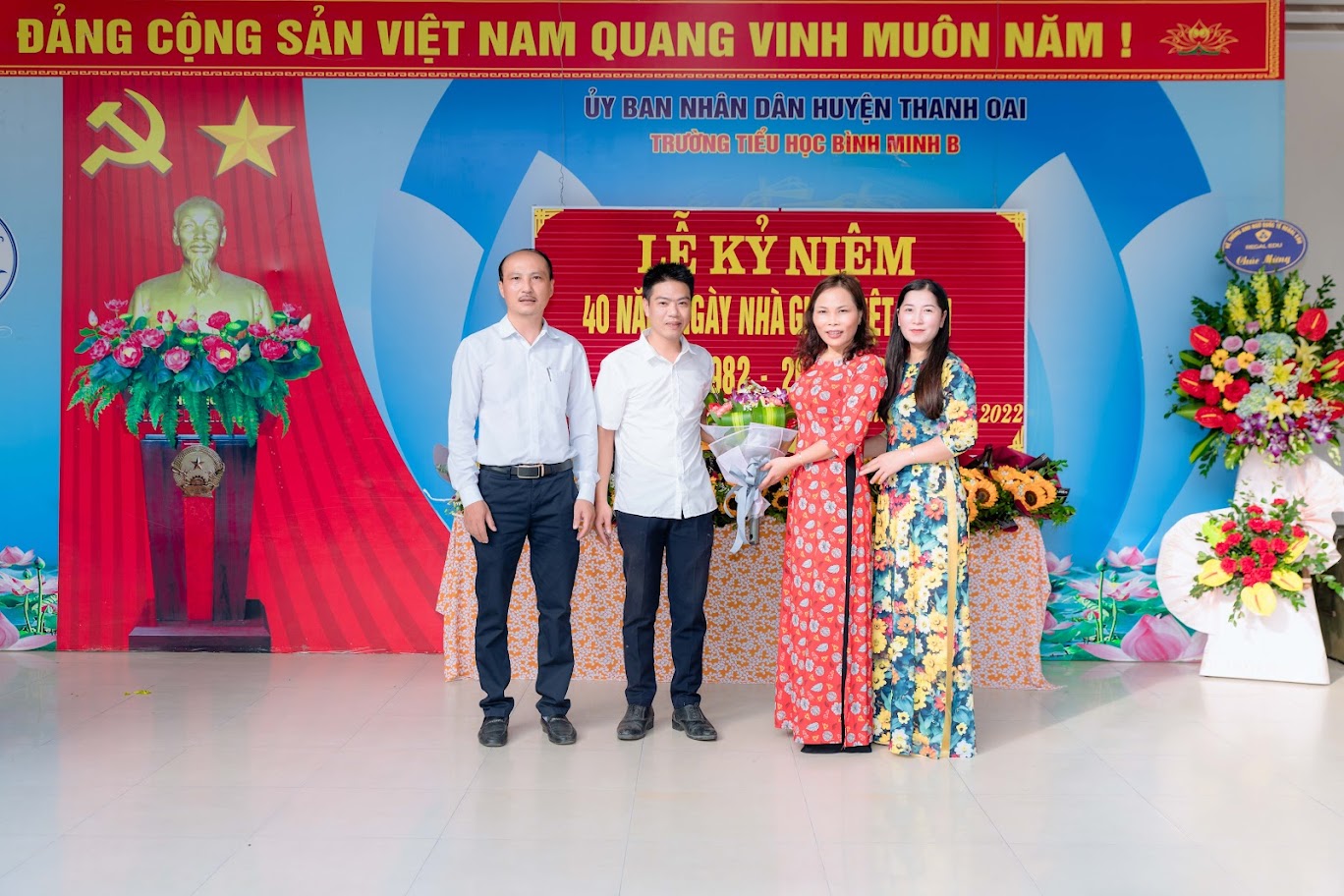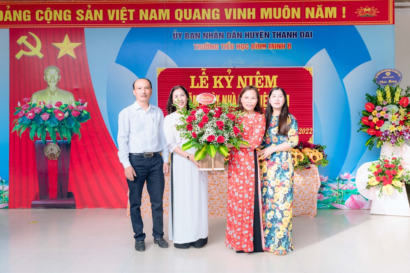 Khen thưởng thầy giáo, cô giáo hoàn thành xuất sắc năm học 2021 - 2022 Năm học 2021-2022, Trường Tiểu học Bình Minh B đã hoàn thành chỉ tiêu kế hoạch đề ra. Trong đó, nổi bật là công tác bồi dưỡng đội ngũ, nâng cao trình độ chuyên môn, tay nghề cho giáo viên; chất lượng giáo dục đại trà và mũi nhọn được nâng lên rõ rệt; nhà trường đã huy động được sự hỗ trợ đầu tư cơ sở vật chất của các cá nhân, tập thể, cảnh quan sư phạm ngày càng khang trang, sạch đẹp. Nhiều năm liền, Tiểu học Bình Minh B là một tập thể sư phạm đoàn kết, vững mạnh, có phong trào thi đua dạy tốt, học tốt sôi nổi. Đội ngũ giáo viên của nhà trường vững vàng về chuyên môn, nghiệp vụ, nhiệt tình trong công tác, có ý thức trách nhiệm cao, được phụ huynh tin tưởng... Chùm hình ảnh hoạt động chào mừng 40 năm Ngày Nhà giáo Việt Nam