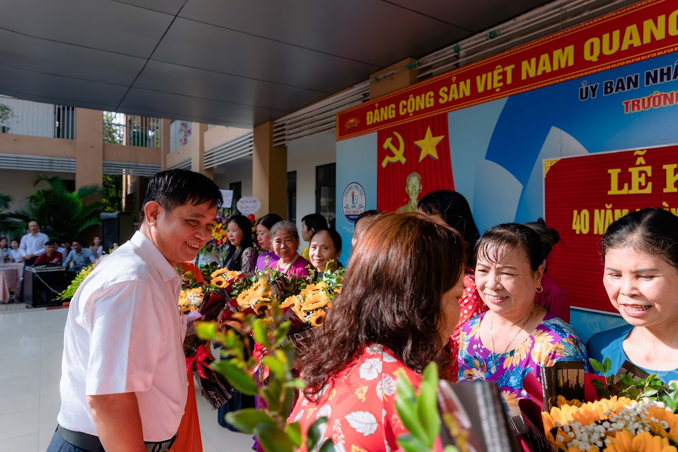 Đại biểu tặng hoa chúc mừng nhân kỷ niệm 40 năm Ngày Nhà giáo Việt Nam . Tại buổi lễ, lãnh đạo nhà trường đã ôn lại truyền thống 40 năm Ngày Nhà giáo Việt Nam; tặng quà tri ân các thầy cô đã nghỉ chế độ hưu trí. Nhân dịp này, trường sôi nổi tổ chức hội thi văn nghệ với sự tham gia của học sinh tất cả các khối lớp.